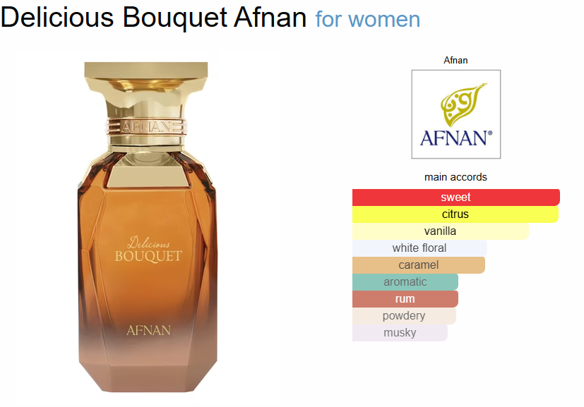 عطر افنان دلیشز بوکت با ترکیب هماهنگ این نتها، تجربهای بویایی ارائه میدهد که از تازگی مرکباتی و گلی آغاز شده، با شیرینی گورمند و خامهای ادامه مییابد و با گرمای وانیلی و کاراملی به اوج میرسد. این عطر مانند یک دسته گل شیرین است که حس شادی، لوکسی و جذابیت را بهخوبی منتقل میکند و برای بانوانی که میخواهند در هر لحظه متمایز باشند، انتخابی بینظیر است.