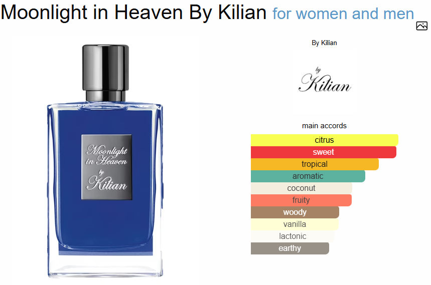 عطر Moonlight in Heaven با طراوت آغاز میشود و لیمو شیرین، گریپ فروت و فلفل صورتی را ترکیب می کند. ترکیب این روایح باعث میشود تا بیاد کوکتل استوایی خنک در یک ظهر گرم تابستانی بیفتید. با توسعه رایحه، نتهای اعجاب انگیز نارگیل، انبه و برنج توجه شما را جلب میکند و تجربهای لذت بخش را ایجاد میکند. نت غالب در این عطر نارگیل و انبه است که باعث میشود رایحه عطر بسیار جذاب و مفرح و کاملا یونیسکس باشد. همچنین نت میانی این عطر، رایحه آرامبخش انبه را آشکار می کند که ترکیب میوهای و گرمسیری را به ترکیب اضافه می کند. این آکوردهای میوهای با نتهای پایه گرم و احساسی وتیور و دانه تونکا کاملاً متعادل شدهاند که حس ظرافت را به عطر میبخشد.این عطر خوشبو، نماد سرزنده بودن و شادابی است که در سالهای متمادی توانسته است در بین افراد شیک پوش و باسلیقه جای خود را باز کند. میتوان گفت این ادکلن خنک، یک رایحه جذاب میوهای با نت پایانی دانه تونکا است که حس زنده بودن را برای مردان و زنان جوان به دنبال دارد ماندگاری بالا و پخش بوی زیاد آن در شب، میتواند زمینه ساز یک شب رویایی برای شما در کنار معشوقتان باشد.