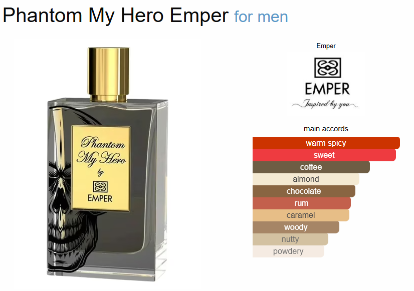 ادکلن امپر مدل فانتوم مای هیرو نیویورک رایحه بای کیلیان بلک فانتوم می باشد. عطر ادکلن بای کیلیان بلک فانتوم-By Kilian Black Phantom عطری است گرم. این عطر در سال 2017 به بازار عطر و ادکلن عرضه شد. عطر ادکلن بای کیلیان بلک فانتوم-By Kilian Black Phantom عطری است زنانه و مردانه و جذاب. بر پهنه دریاهای متلاطم و طوفانخیز، کشتی شکستناپذیر دزدان دریایی اعماق دریا را آراسته کرده و با رازهای ژرفای دریا یگانه شده است. بلک فانتوم ممنتو موری هم دقیقا به همین شکل، گنجینههای پنهانش را همچون موجهای دریا برای شامههای کنجکاو و تیزهوش آشکار میکند.آکورد شراب رام مارتینیک، شبیه به نوشیدنیهای مخصوص دزدان دریایی، بوی نیرومند قهوهاش را در نتهای میانی به جلوه درمیآورد و سپس آن را بهواسطه عصاره خسخس متعادل میسازد. آکورد اسید سیاندریک هم نیش گزنده و خطرناکش را پنهان کرده است، همچون لبخند مرگ. لبخندهای خاص این عطر با رایحه نیشکر و مایههای تیره و کرمی چوب صندل دوباره بازمیگردد تا به شما اطمینان دهد که هر سفر سختی قطعا پاداش شیرینی دارد.