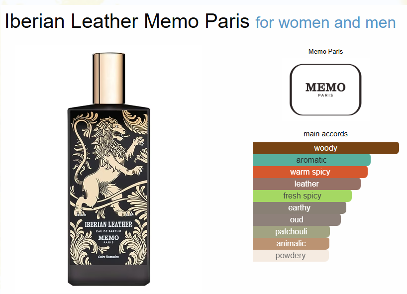 - رایحه پایه: مشک، کهربا، وانیل، نعناع هندی، خزه درخت بلوط، خس خس، سدر، چوب صندل سفید، چرم، درخت نراد، عود