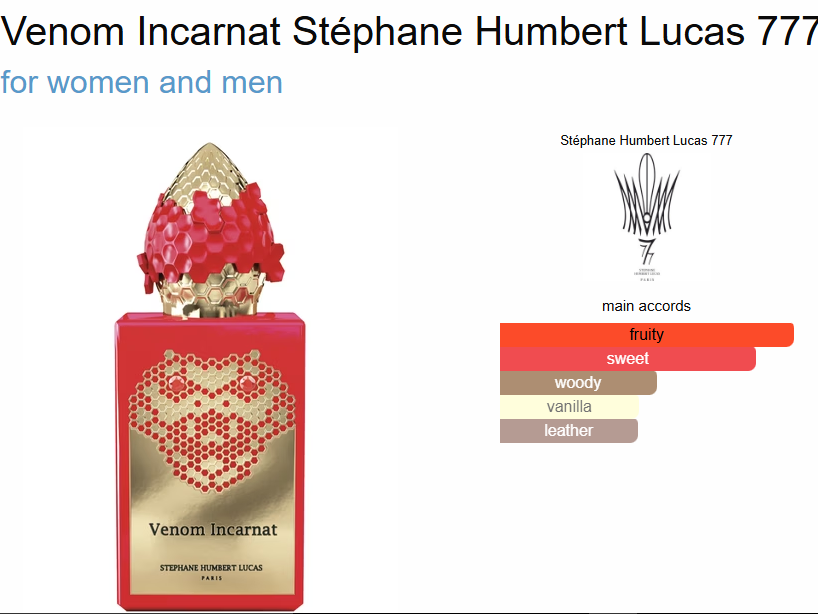 ادکلن فرنچ اونیو مدل وننو اسکارلت رایحه هامبرت لوکاس ۷۷۷ ونوم اینکارنت عطری یونیسکس است که در سال ۲۰۲۵ به عنوان بخشی از مجموعه وننو منتشر شد. این عطر دارای ترکیبی میوهای-گلی-چوبی با نتهای بالایی گیلاس، نتهای میانی یاس و نتهای پایه چوب تیره است. این عطر تعادلی بین درخشندگی میوهای و عمق چوبی ارائه میدهد.عطر Veneno Scarlet از برند French Avenue عطری زنانه-مردانه است. این عطر جدید است. Veneno Scarlet در سال 2025 به بازار عرضه شد. نتهای اولیه آن توت فرنگی، شاه توت و کارامل؛ نتهای میانی آن تمشک، سدر و دارچین؛ و نتهای پایه آن چرم، کارامل، وانیل، نعناع هندی، صنوبر و لوبیا تونکا هستند.این عطر زنانه و مردانه، دوستداران عطرهای جسورانه را با ترکیبی هماهنگ از رایحههای میوهای، لذیذ، جنگلی و تند، اغوا میکند. وننو اسکارلت، دعوتی واقعی برای کشف جنبههای جدید بویایی، عطری شرقی/خوراکی است که به طور قاطع امروزی است و برای کسانی طراحی شده است که به دنبال امضایی منحصر به فرد و مناسب برای هر دو جنس هستند.