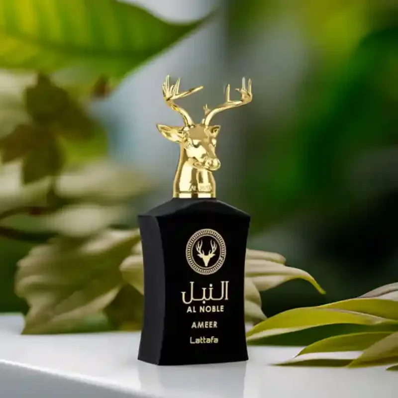 عطر ادکلن النبل عامر مشکی al Noble Ameer از شرکت لطافه عطری است گرم و تند، چوبی و ادویه ای مناسب برای خانم ها و آقایان می باشد که در سال ۲۰۲۲ به بازار عرضه شد و همچنین عطر خاصی است که مشابه ندارد. این عطر رایحه ای را ارائه می دهد که بیانگر زیبایی طبیعت است . عطر النبل عامر ، گذشته زیبا، اصالت کهن و اشتیاق به طبیعت را با خود به ارمغان می آورد. این عطر در گروه بویایی شرقی چوبی قرار دارد و بسیار مورد توجه قرار گرفته است . در مورد مادنگاری و پخش بوی النبل عامر هم باید گفت که پخش بو و ماندگاری فوق العاده ای دارد.شما در این عطر با چوب سوئدی روبرو هستید. رزماری، فلفل صورتی وسیب اولین نت هایی هستند که از این عطر به مشام می رسند. رایحه ی ناب و دل انگیز از سیب در کنار تندی که از فلفل و رزماری برمی خیزد. در میانه راه، رایحه ی متفاوتی ظهور می کند. ادکلن النبل مشکی تندی و ادویه ای بودنش را از میخک می گیرد و نت های گلی را ارائه می دهد. نت های سیب و نت های گلی با قرار گرفتن در کنارنت های ادویه ای، قدرت می گیرند. در نهایت این عطر با ترکیبی از عود، نعناع هندی، خس خس، لبدانوم به پایان می رسد .