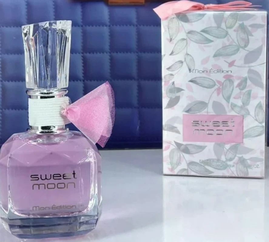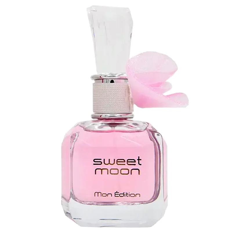 عطر ادکلن سوییت مون Sweet Moon فراگرنس ورد عطری زنانه و شیک با رایحه ای ملایم و شیرین است و مشابه ادکلن ایو سن لورن مون پاریس می باشد. این عطر ادکلن زنانه شیک و جوان پسند در گروه بویایی گلی میوه ای قرار دارد .عطر سوییت مون زنانه با ترکیبی آبدار و شیرین از ترنج، تمشک و گلابی آغاز می شود. در قلب رایحه به گل داتوره، شکوفه پرتقال و گل یاس می رسد . این ترکیب گلی مرکباتی حس شادی و نشاط را به شما منتقل می کند. با گذر زمان نت های میانی جای خود را به نت انتهایی با تریب مشک و نعناع هندی می دهند. رایحه ی غالب عطر مون پاریس ترکیبی خوراکیست. مانند میوه های توت فرنگی، گلابی، رازبری و درون آن وانیل با گل صدتومانی و یاس ادغام شده است. بخاطر استفاده از عناصر میوه ای و ذات چایپر ادکلن سوییت مون مناسب برای مصرف روزانه و تمام فصول سال می باشد.
