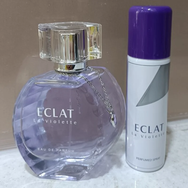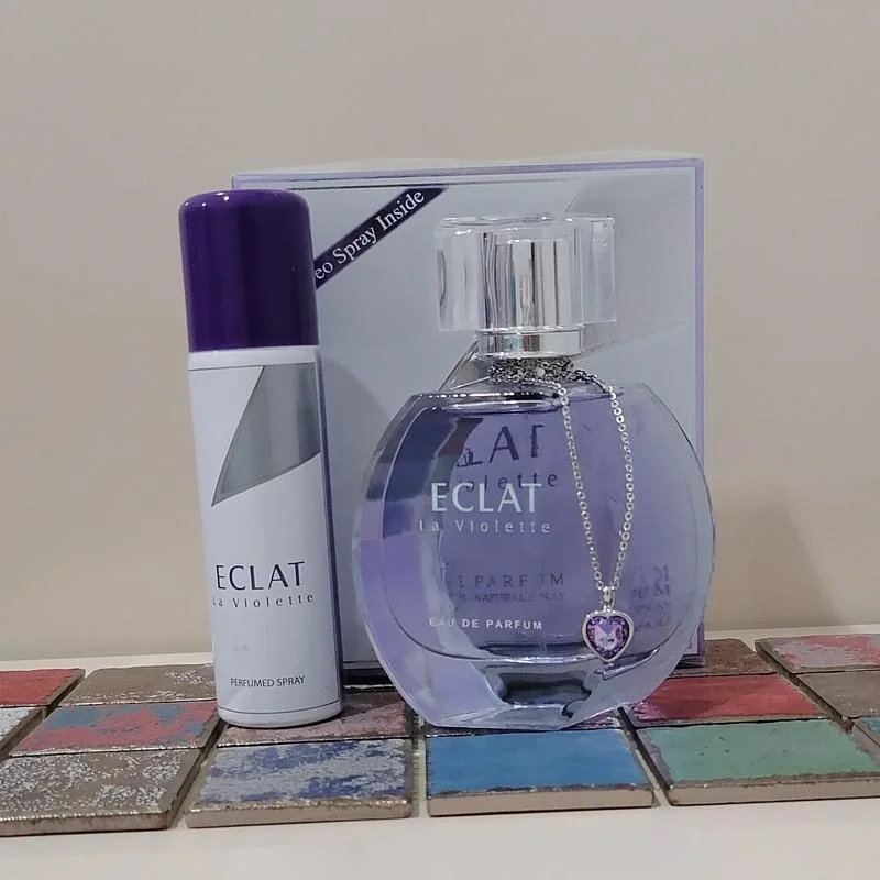 عطر ادکلن اکلت لا ویولت Eclat La Violette فراگرنس ورد عطری زنانه و جذاب با رایحه ی ملایم و شیرین است و مشابه و نمونه شرکتی ادکلن معروف اکلت لانوین می باشد.ترکیب جادویی و افسونگر این ادکلن بیشتر از عطر خوش یاس بنفش، چای و شکوفه هلو حاصل می شود. ادکلن اکلت لا ویولت با رایحه ی گلی و میوه ای همانند تم موزیکالی است که روح آدمی را به نوازش در می آورد. این عطر با بوی خنک و شیرینش برای روز های بهاری و تابستانی بسیار مناسب است.پس از اسپری ادکلن اکلت زنانه فراگرنس ورد بر روی پوست یا لباستان متوجه بوی شکوفه درخت هلو و برگ چای می شوید. این ترکیب به سرعت در فضا پخش می شود و با رایحه بی نظیرش توجه اطرافیان را به شما جلب خواهد کرد. با گذر زمان نت های اولیه جای خود را به نت های میانی می دهند. نت های میانی از پونه، مشک و ویستریا تشکیل شده است. پس از مدتی خط بویایی تغییر مسیر میدهد و به سمت نت های پایانی می رود که از ترکیب عنبر، چوب درخت سدر و گیاه اوسمانتوس تشکیل شده است. این ادکلن زنانه با رایحه گل ها و میوه ها، نشاط و سرزندگی را به شما هدیه می دهد.