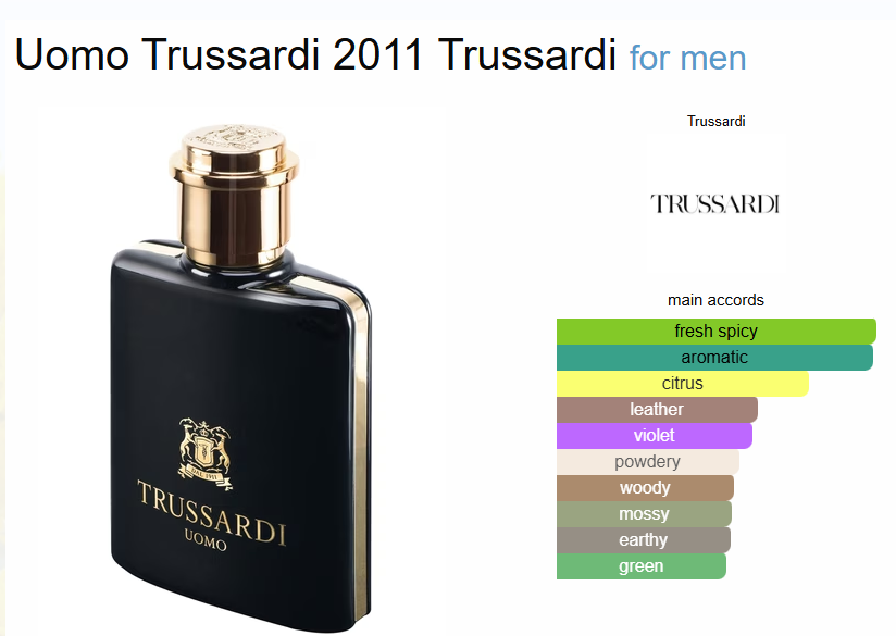 عطر ادکلن تروساردی اومو روونا Rovena Trussing Uomo با رایحه مثال زدنی و جذاب توانسته طرفداران زیادی بدست آورد ؛ این رایحه یک عطر مردانه است که با رایحه دل انگیز و منحصر به فرد خود انتخاب بسیار خوبی برای دوستداران عطر و ادکلن و یا کسانی که قصد هدیه دادن به اطرافیان خود دارند به شمار می رود. این بوی دل انگیز گزینه عالی برای سخت پسندان است. پیش رایحه این محصول شگفت انگیز از گالبانوم ، جوز هندی ، برگاموت و لیمو آمالفی تشکیل شده است. در ادامه و با گذر زمان میان رایحه آن شامل شمعدانی ، بنفشه و کلاری سیج می شود. رایحه پایه آن نیز نعنا هندی ، اوکموس و چرم است.