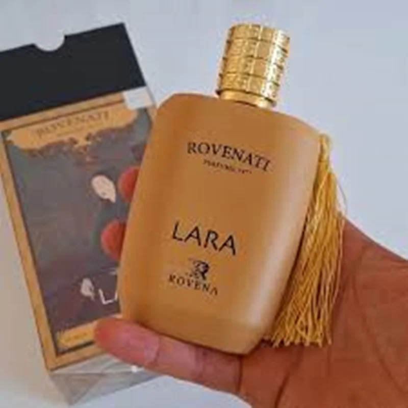 ادکلن زنانه روونا مدل رووناتی لارو مشابه رایحه کازوماراتی لیرا می باشد. عطر لارا عطری است گرم و شیرین که در سال 2011 در ایتالیا توسط کریس موریس عرضه شد. با توجه به رایحه ی گرم و شیرین این محصول از آن میتوان در چهار فصل سال و در درازای شبانه روز استفاده ی مدام داشت. این عطر زنانه عطریست که در ابتدا با شیرینی دلچسب و خوشمزه ی وانیل کار خود را آغاز کرده و با شدت به سمت ملایمت رایحه ی گلها رفته و کم کم ماندگاری بیشتری به خود می گیرد.نت ابتدایی رایحه ی کازوماراتی لیرا روونا از عناصری همچون اسطوخودوس ، پرتقال خونی و ترنج تشکیل شده است. در نت میانی و در قلب این رایحه شاهد حضور عناصری همچون دارچین ، گل یاس و شیرین بیان خواهیم بود و اما در نت اصلی و در پایه این عطر از عناصریی همچون وانیل ، مشک و کارامل بهره برده که با توجه به حضور پر رنگ کارامل پایه ی اصلی رایحه ی این عطر بر مبنای حضور پر قدرت آن طراحی شده است .